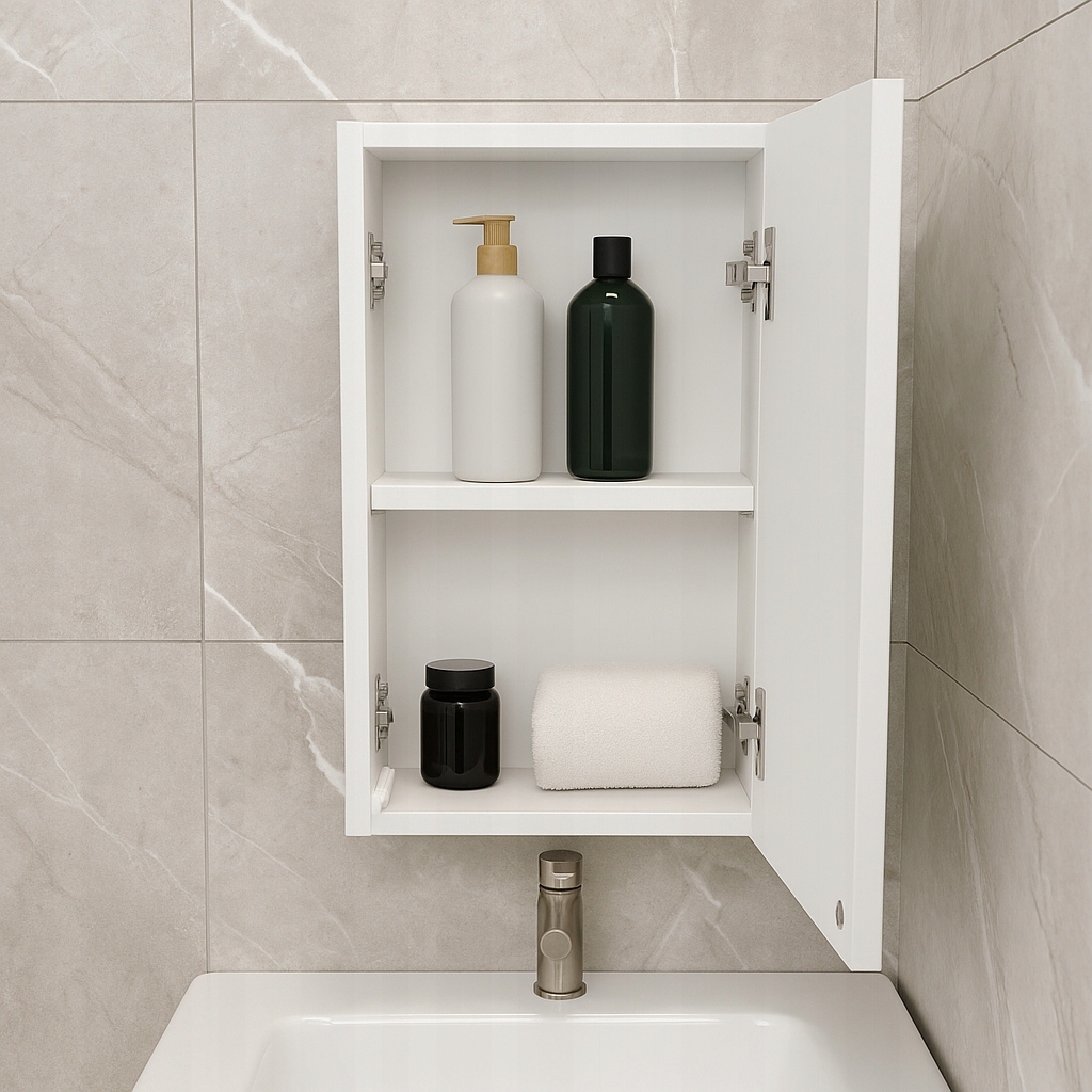 📦 Praktyczne półki wewnątrz pomagają uporządkować kosmetyki, ręczniki i akcesoria łazienkowe.