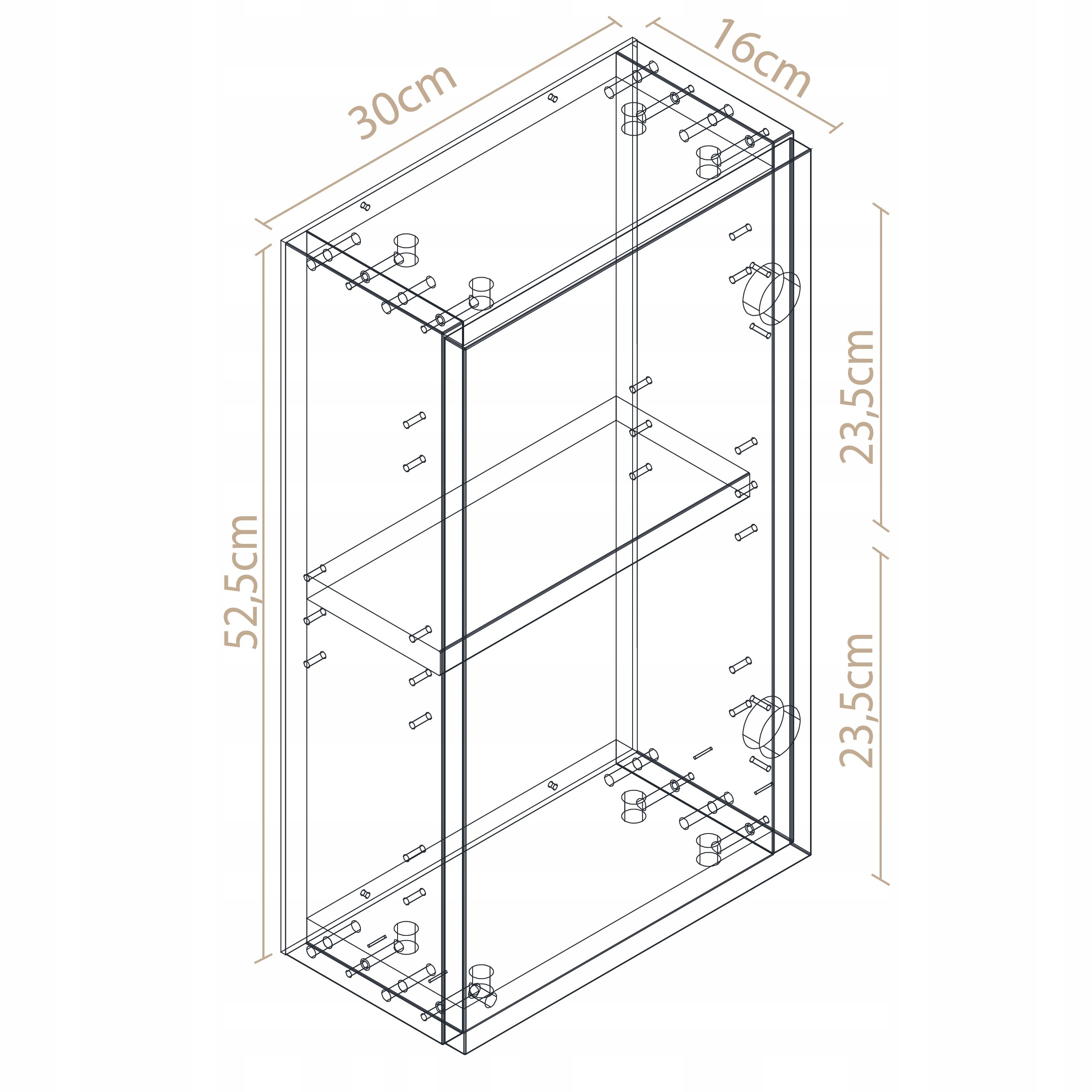 📏 Kompaktowy rozmiar 52,5 × 30 cm sprawia, że szafka idealnie sprawdzi się w małych łazienkach lub wąskich przestrzeniach.