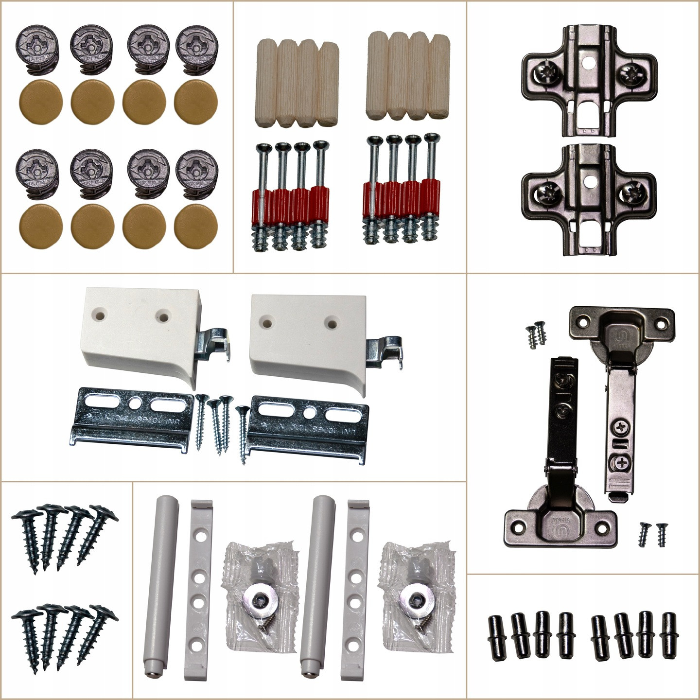 Zestaw montażowy: Okucia potrzebne do złożenia szafki, listwy montażowe (zestaw nie obejmuje kołków montażowych)