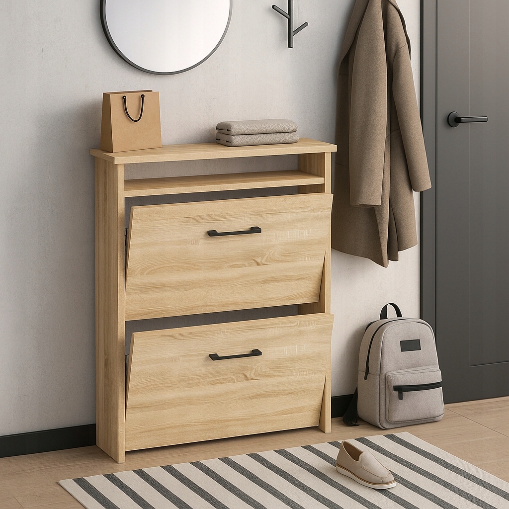 Szafka na buty dąb sonoma 2 uchylne szuflady matowe uchwyty NA 6 PAR